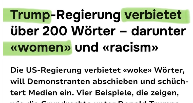 Trump-Regierung verbietet über 200 Wörter – darunter «women» und «racism» (Nau, 12.3.25)